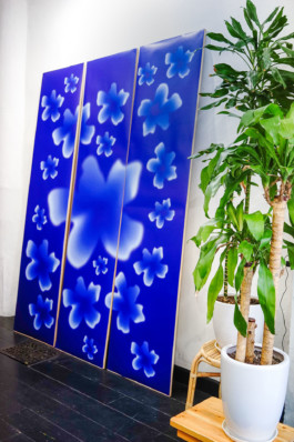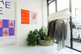 MJ POPUP is the exhibition of Minjoo Lee, who is a fine artist, based in Los Angeles. Conversion of the canvas is the main thesis of this exhibition. The identity system united artworks in a voice and communicate the artist's ethos and message unconsciously. It gives the ironic to the people by showcase the solid grid system with abstract painting on the bag(as a canvas)